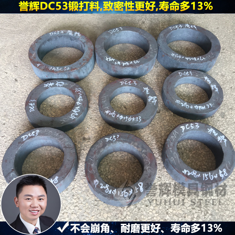 譽輝DC53模具鋼,多家世界500強采購,暢銷17年,還沒收到質量投訴。陽江不銹鋼餐具的五金沖壓模具沖頭多年來,一直選用譽輝公司的DC53模具鋼。已經有15家不銹鋼沖壓廠的模具沖頭料,選用譽輝DC53模具鋼!世界500強京瓷已經連續8年,采購東莞譽輝DC53模具鋼制作模具沖頭生產復印機。上市企業宇球電子等大量連接器廠家的沖壓模具,選用譽輝的DC53模具鋼用于模具鋼沖頭料。