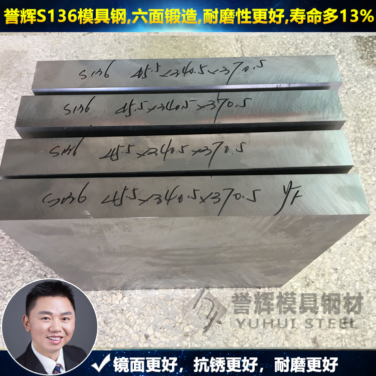 譽輝S136模具鋼是在煉鋼廠定制化產品,采用真空冶煉,定制提純工藝,提高模具鋼純凈度,增加合金含量。譽輝S136模具鋼,鏡面拋光達10000號以上,如果不發生人為的意外操作,不會有麻點或沙孔。