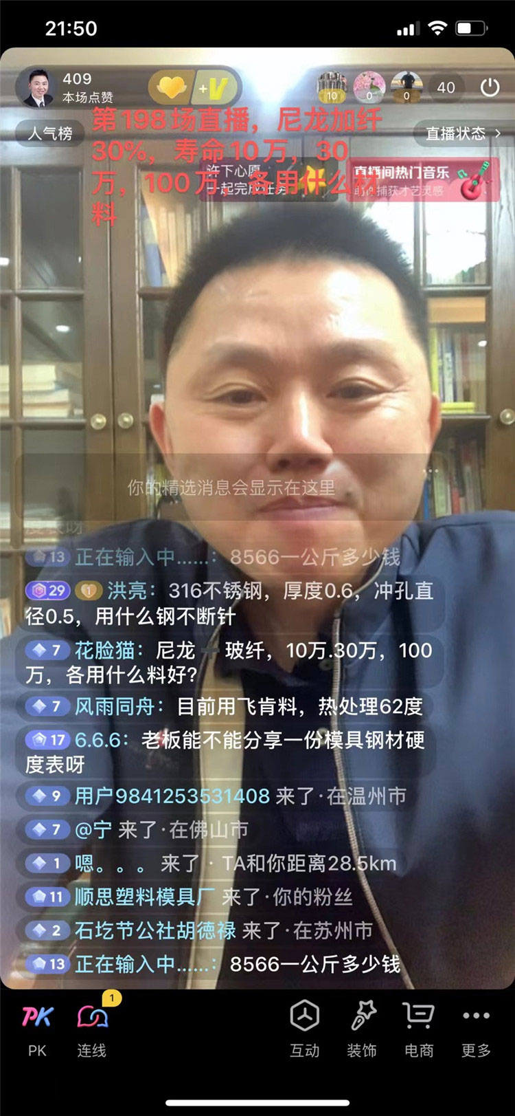 直播間有網友提問,尼龍加纖30%,壽命要求10萬、30萬、100萬,各用什么模具鋼?