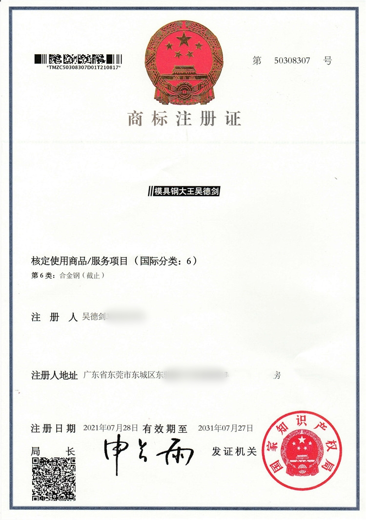 再說了,我已經(jīng)把吳德劍、吳德劍模具鋼、模具鋼大王吳德劍都注冊成了商標,而且真人露臉拍視頻、做直播,相當于我是在用身家性命來擔保我的模具鋼質(zhì)量,能做到這一點的,全網(wǎng)沒有第二人,所以你大可以放心。
