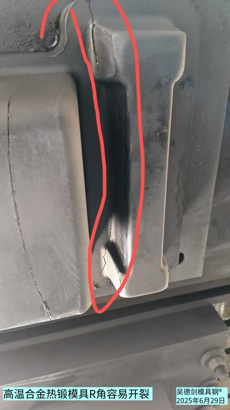 當用于溫度極高,合金總量高的高溫合金熱鍛時,耐熱性能、高溫強度、熱磨損性能、都顯得非常差,所以容易塌模,容易開裂。
