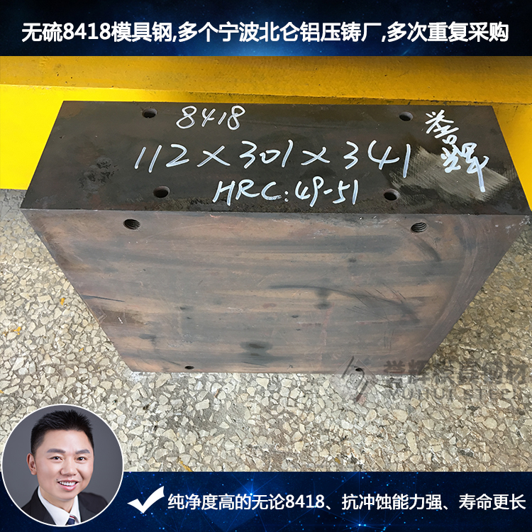 無硫8418主要用于大型鋅、鎂、鋁合金壓鑄模具、熱擠壓模具(如:模仁襯套、頂桿、承塊等)、熱鍛模具等。特別是要求長壽命,高骨位,薄壁的鋁合金壓鑄模具。要求韌性的塑膠模具,長壽命塑膠模具,鏡面拋光塑膠模具。如果不考慮成本,僅從鋁合金壓鑄模具,使用壽命方面考慮,無硫8418是理想選擇。